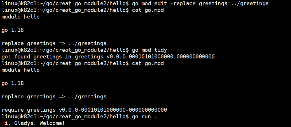 linux@k82c1:~/go/creat_go_module2/hello$ cat hello.go